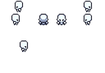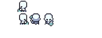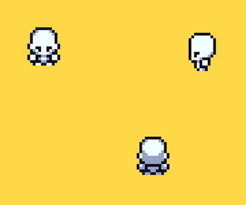 Each sprite was designed with 16x16 tilesets in mind placed into 48x48 cells. Player sprite sits around 12x14 (idle), but gets smaller/larger based on animations. This set is meant to retain a more chibi/cute/chubby/round/Gameboy aesthetic.